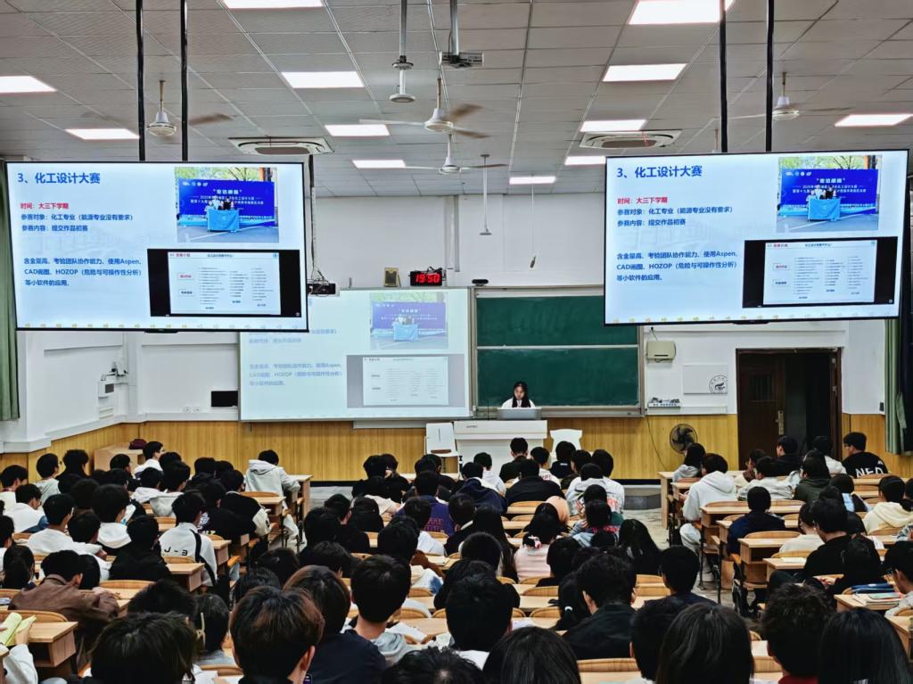 宣讲会上,四位优秀学子结合自身经历,从不同角度分享了宝贵的学习与成长经验。周思羽同学详细讲述了自己的学习历程,并毫无保留地向同学们展示了精心制定的周期学习计划,提醒大家做好学习规划并严格落实的重要性;杨雁怡同学分享了科研探索与学科竞赛参赛经历,以自身丰富的实践经历为切入点,鼓励同学们学习过程中积极抓住各类机遇,勇于挑战自我,实现以科研促学习、以竞赛促成长。在互动环节,同学们围绕学习、科研、生活等方面提出了诸多困惑。四位分享者结合同学们的提问耐心细致地解答,进一步拉近了与同学们的距离,现场气氛热烈。